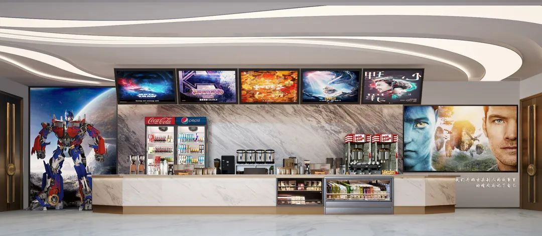 影城装修时尚潮流每一处都尽显科技感和时尚感酷炫的灯光、个性创意照片墙随手一拍都能出大片!